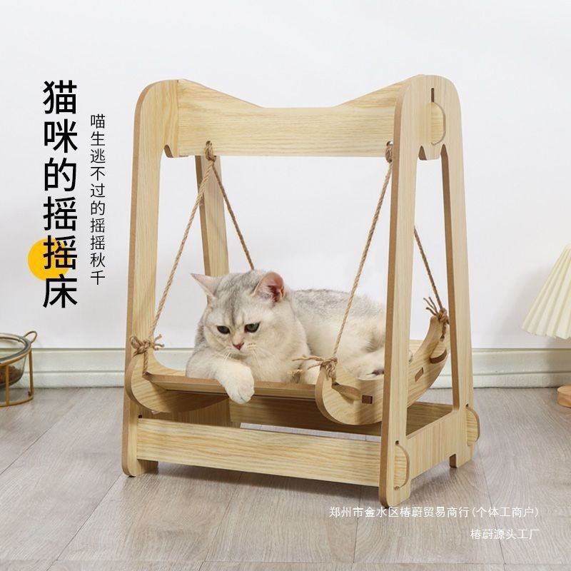 Kursi goyang hewan peliharaan tempat tidur gantung hewan peliharaan mainan kayu tempat tidur goyang kucing kayu dengan pegangan