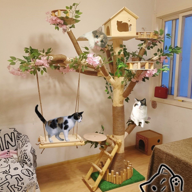 Kucing Kucing Pohon Kucing Rak Kucing Kayu Solid Tongtianzhu Besar Satu Satu