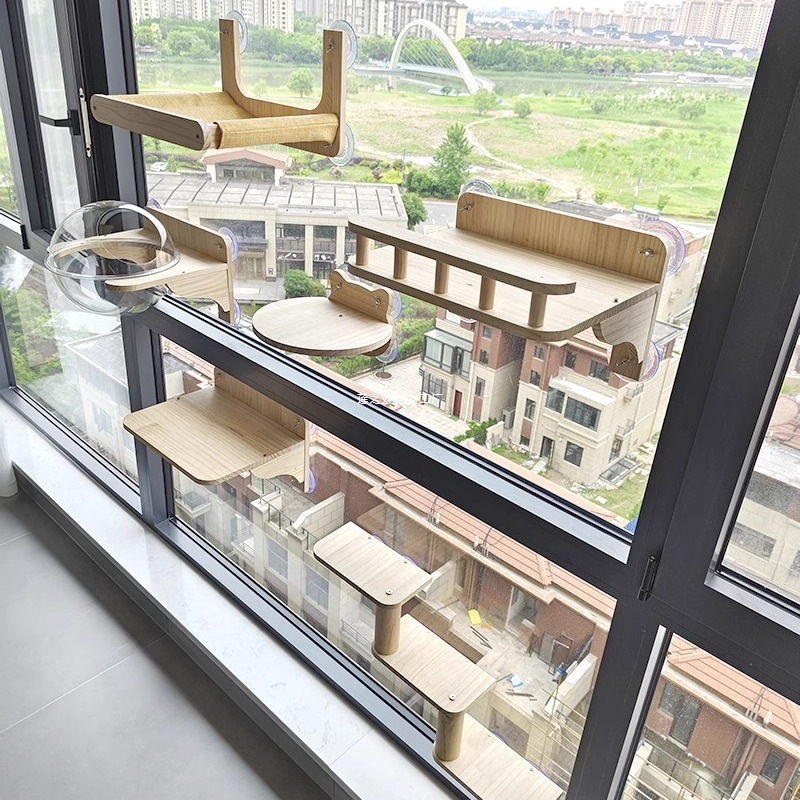 Rak Memanjat Kucing Tanpa Lubang Pengisap Tipe Gantung Dinding Jendela Kaca Langit Meja Gantung Dinding Kucing Tempat Tidur Gantung