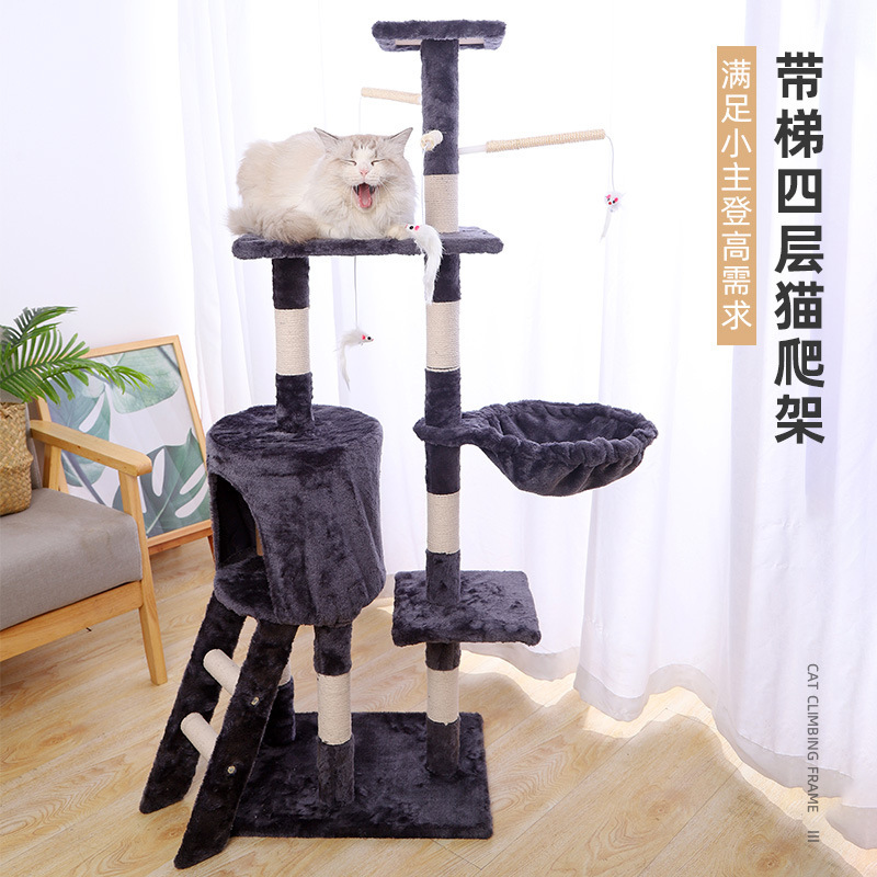 Diskon besar Amazon mainan kucing pohon kucing bingkai mendaki sisal empat lapis dengan tempat tidur gantung kucing tangga bingkai panjat kucing empat lapis