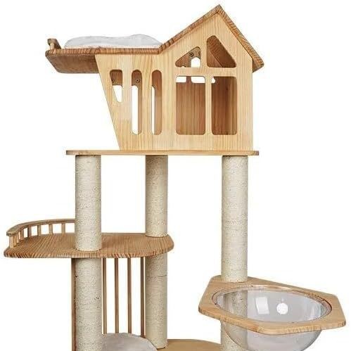 Rak gantung sarang kucing, tempat tidur gantung dari kayu kucing padat memanjat menara kucing besar tempat tidur goyang