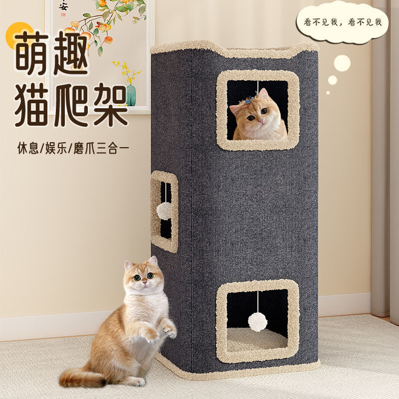 Rak panjat kucing lintas batas model baru, tiang garukan kucing, rumah kucing terintegrasi, rak kucing bertingkat, bola penggoda kucing, rak panjat kucing bergaya vila.