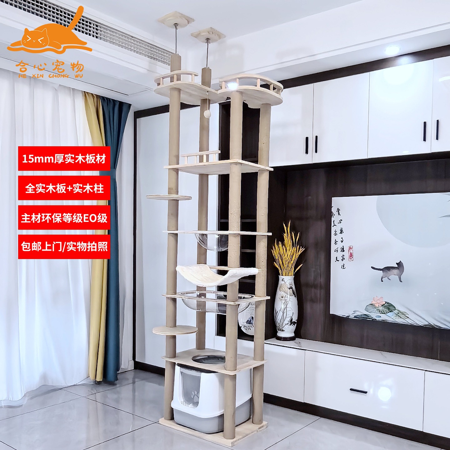Kucing memanjat bingkai sarang kucing pohon kucing terintegrasi penjualan langsung kucing papan gores kayu solid kucing besar melompat platform berbentuk kolom kucing Villa