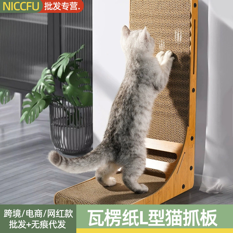 Kertas bergelombang tipe L papan gores kucing depresor vertikal rangka panjat tebing kucing mainan kucing antiketombe tahan aus tahan gores grosir