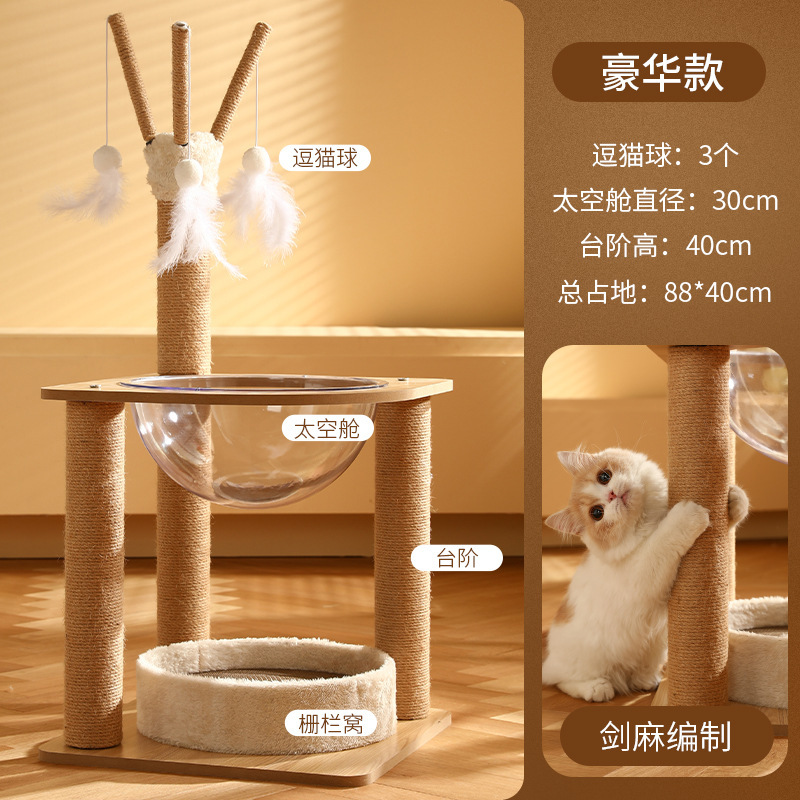 Besar bernapas anti-kelembaban transparan ruang kapsul sofa peliharaan tempat tidur padat tahan lama multi-kucing keluarga menyenangkan kucing mendaki bingkai pabrik