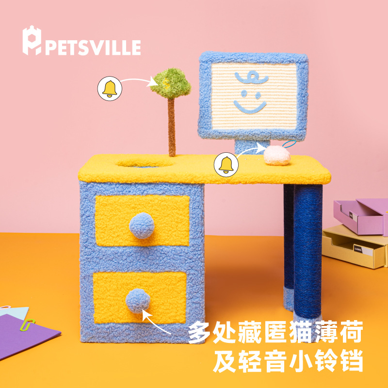 PETSVILL mainan papan cakar kucing berputar, bingkai mendaki tahan aus tidak licin berpikir untuk kucing menggaruk tiang cakar tahan gores terintegrasi vertikal