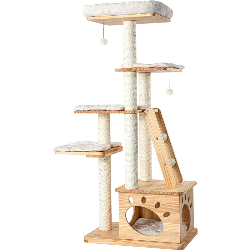 Rak Pemanjat Kucing Kayu Solid Besar Rak Kucing Satu Pohon Kucing Kandang Kucing Rak Kucing Satu Bagian Papan Genggam Kucing Perlengkapan Hewan Peliharaan