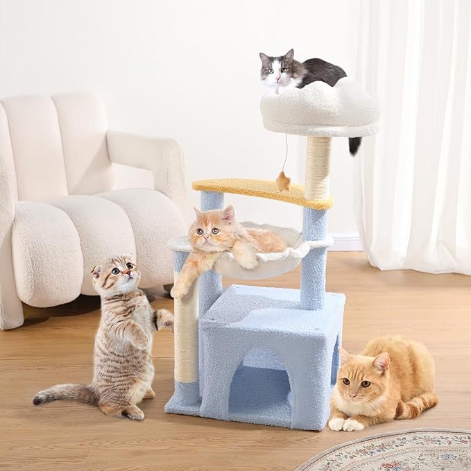 Pohon Kucing dengan Sisal Catok Menara Kucing dengan Tempat Tidur Gantung Kucing lucu Apartemen dengan Tempat Tidur Kucing Nyaman dan Habitat