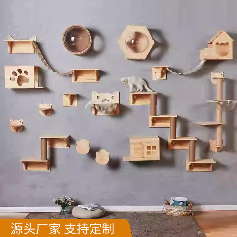 Rak Panjat Kucing Kayu Rak Dinding Kayu Solid Model Gantung Dinding Kucing Memanjat Hewan Peliharaan Kucing Meja Melompat
