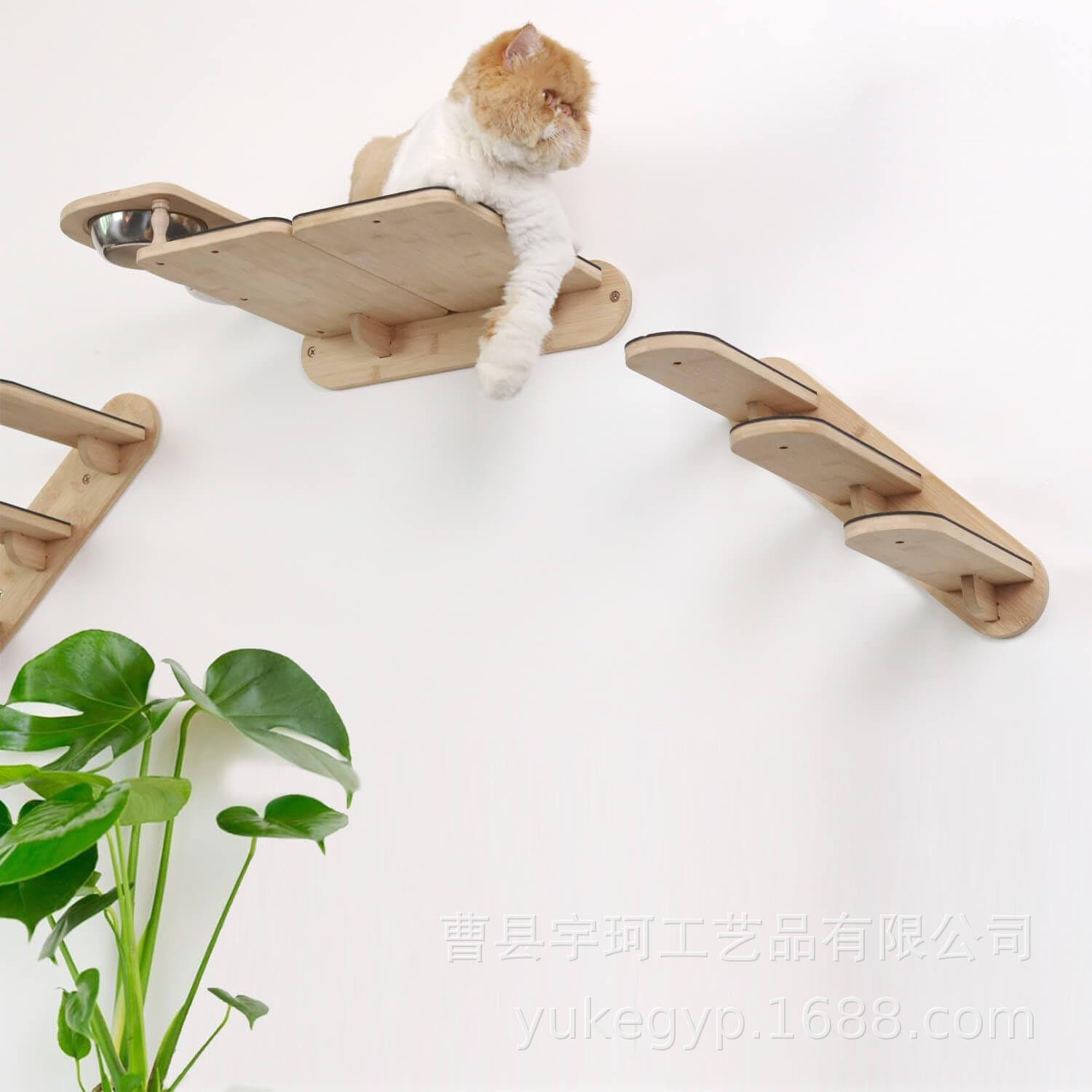 Dinding multi-lapisan rak panjat kucing tali sisal perlengkapan mainan kucing tangga kayu lintas batas dinding tangga panjat kucing kayu