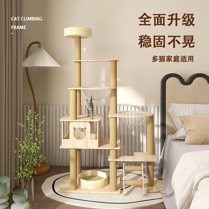 Lantai kucing memanjat bingkai pohon menara Tongtian kucing tiang menggaruk kucing melompat platform tempat tidur gantung hewan peliharaan pabrik grosir kucing besar apartemen