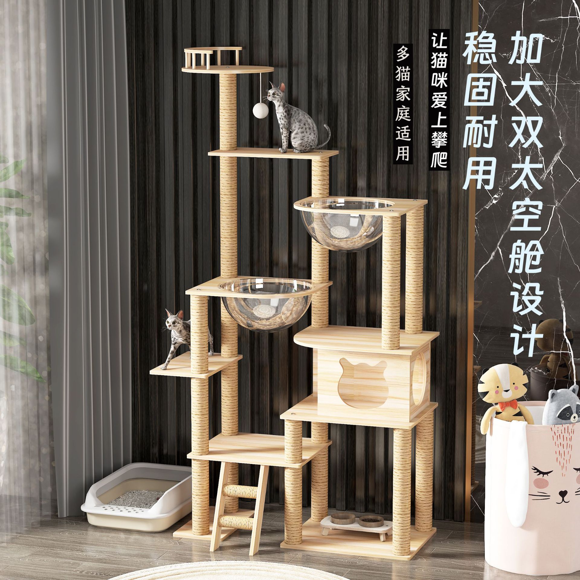 Rak panjat kucing, sarang kucing pohon terintegrasi besar rak memanjat kucing banyak kucing kayu solid rak kucing sisal kucing lompat platform ruang kapsul