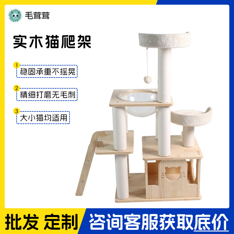 Bingkai panjat kucing kayu padat terintegrasi, sarang kucing pohon empat musim universal kolom sisal kucing papan gores mainan kucing grosir