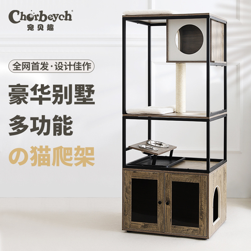 Rumah kucing, tempat tidur kucing terintegrasi, tiang panjat kucing, tempat berdiri kucing, pohon kucing, tempat bermain dan tidur untuk mengasah cakar, perlengkapan kucing.
