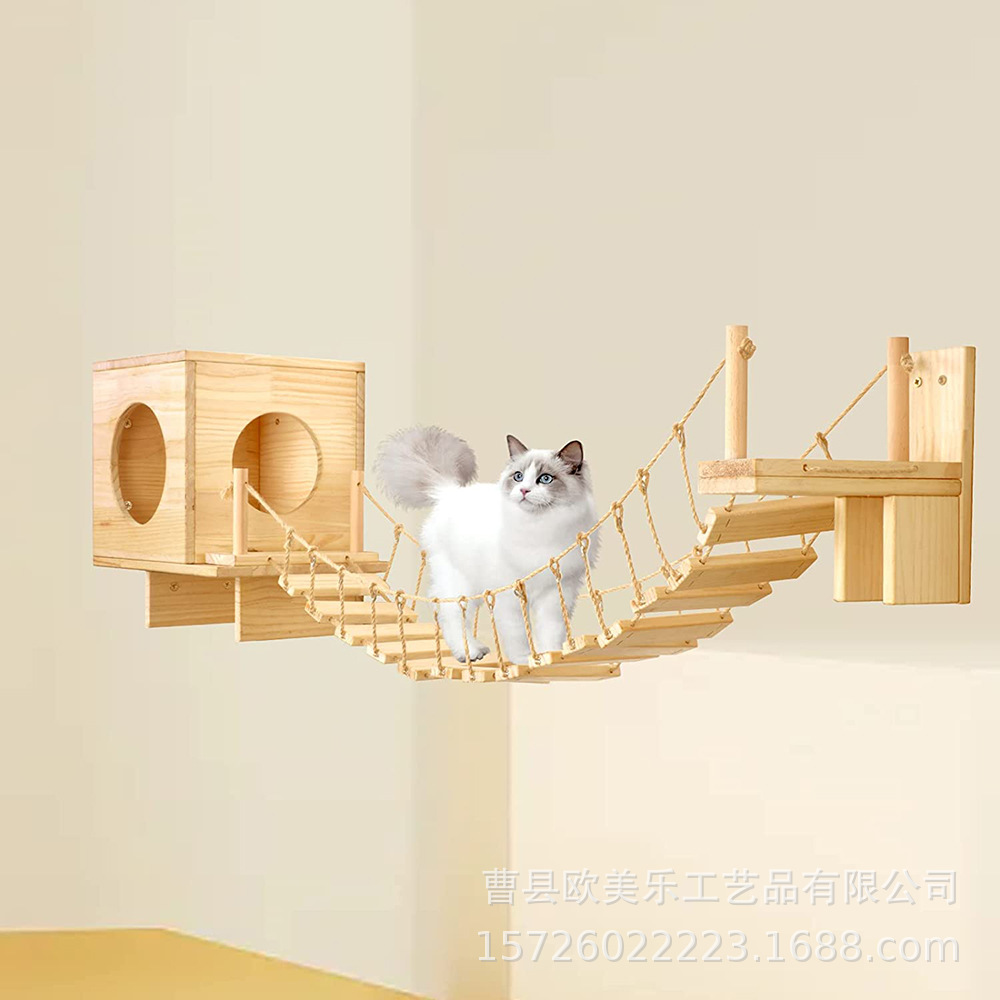 Tempat tidur gantung kucing kayu di dinding, tempat tidur gantung kucing kayu solid, jembatan gantung lintas batas, produk baru