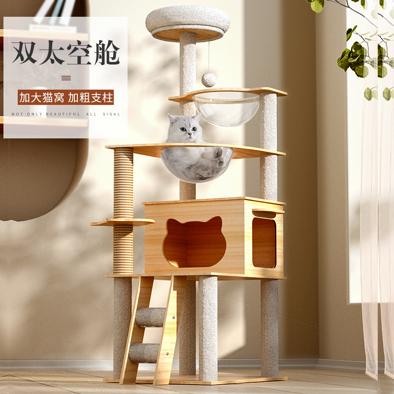 Lefei rak panjat kucing, sarang kucing kapsul angkasa tidak menutupi pohon kucing kayu besar terintegrasi rumah kucing menggaruk tiang