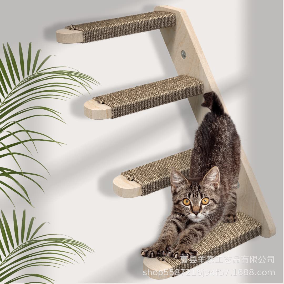 Rak cakar kucing, mainan panjatan kucing tiang panjat tebing, Tangga lintas batas, kayu solid banyak tingkat dengan tangga kucing pasang Dinding