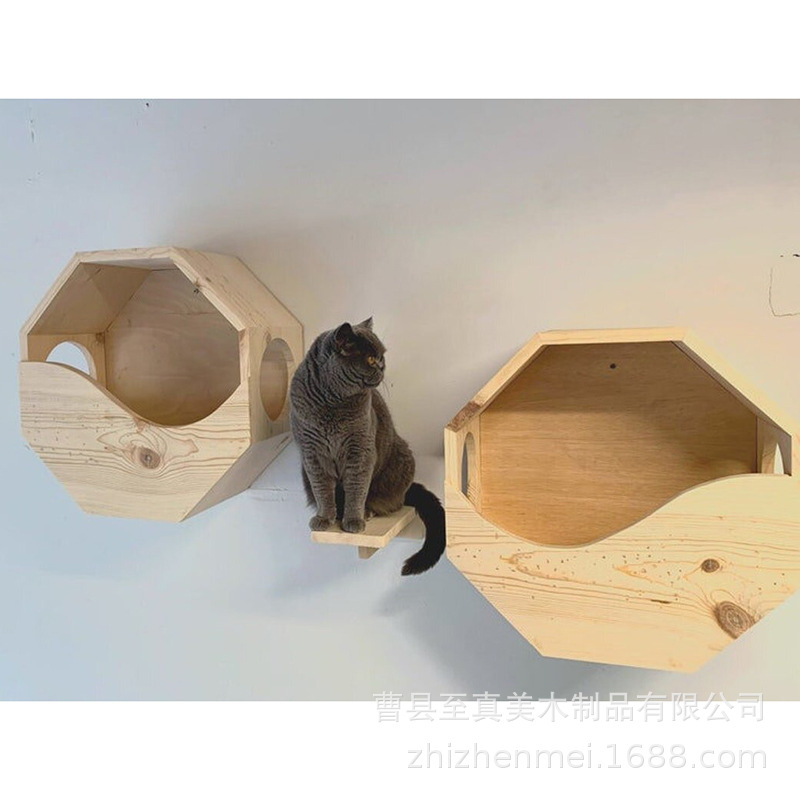 Pabrik grosir kayu solid dinding kucing rak panjat heksagonal gudang sarang lebah ruang kapsul desain tata letak transparan penutup Dinding
