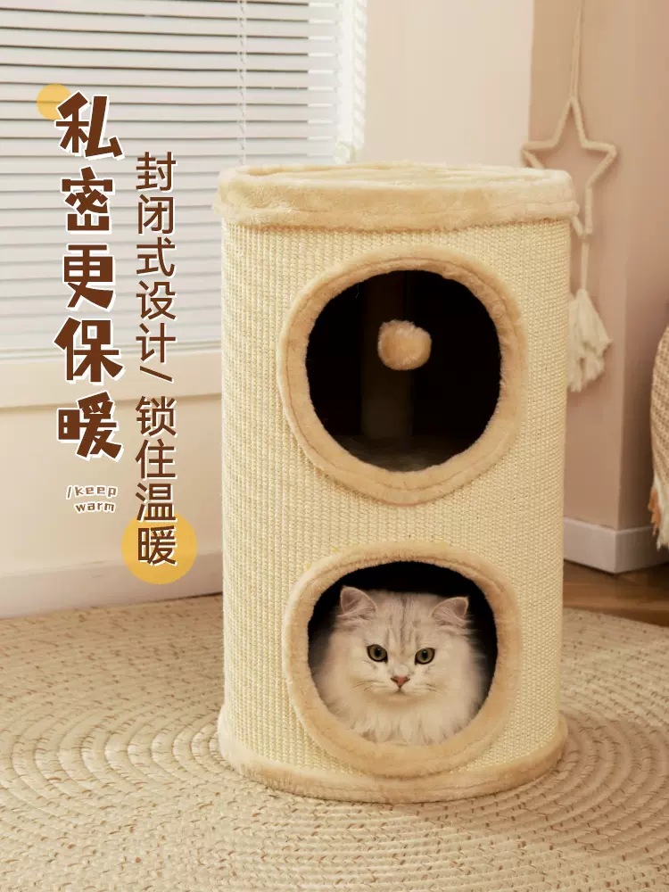 Kucing mendaki bingkai sarang kucing pohon kucing terintegrasi multi-lapisan pohon kucing lubang musim dingin dua lapisan papan gores kucing musim dingin rumah kucing musim dingin hangat
