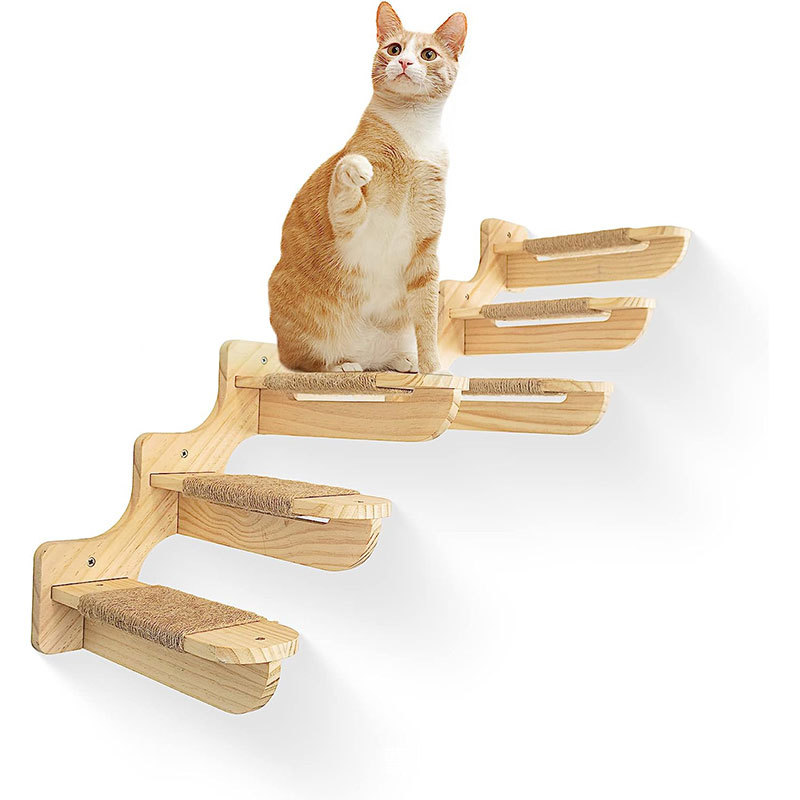 Rak springboard kayu padat untuk kucing, rak panjat tebing kucing, tangga sisal gantung dinding hiburan terintegrasi hewan peliharaan