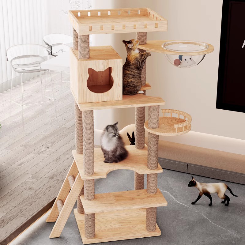 Pabrik lintas batas pasokan langsung kucing besar rak mendaki sarang kucing boneka Maine pohon kucing terintegrasi rak kucing kayu solid papan gores kucing platform melompat