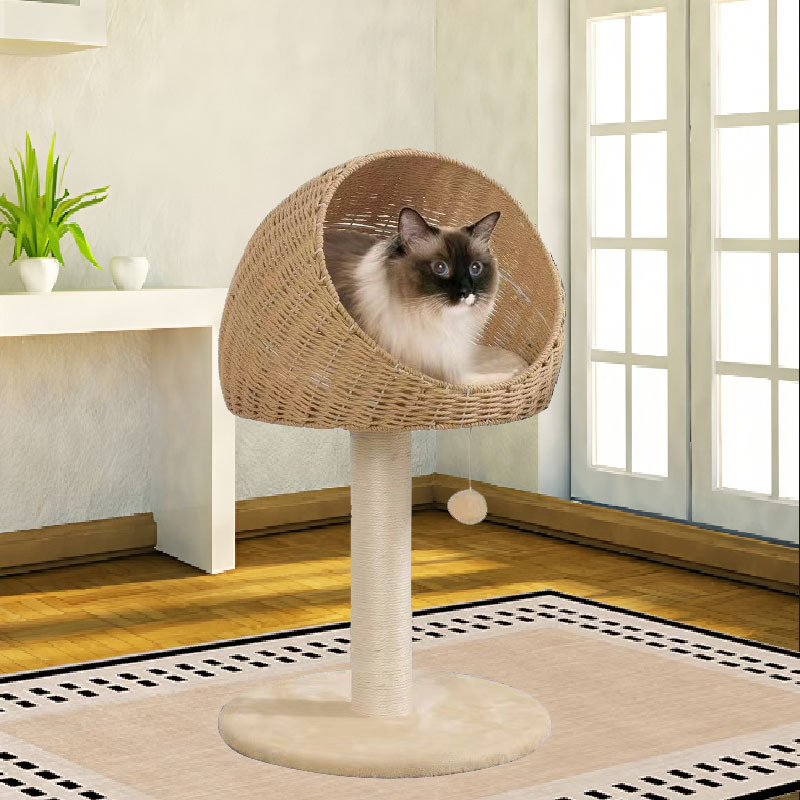 Rotan Jepang woven kucing mendaki bingkai kecil terintegrasi kucing melompat platform helm tipe kucing besar sarang rak mudah untuk menangani tanpa menutupi area