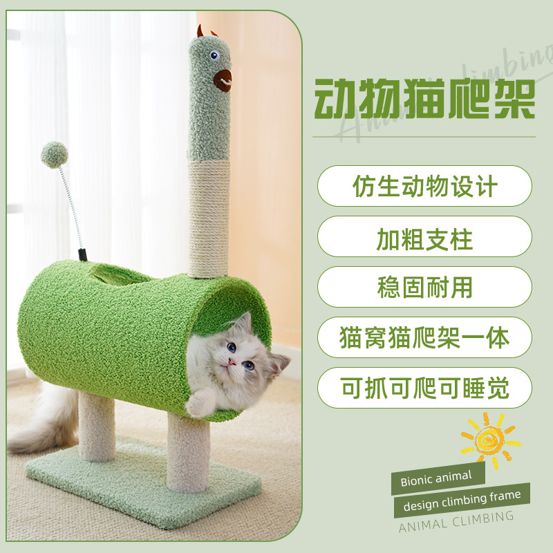Mainan kucing seri hewan baru bingkai panjat kecil sarang kucing tahan aus tempat cakar kucing sisal terintegrasi mainan kucing kartun flanel