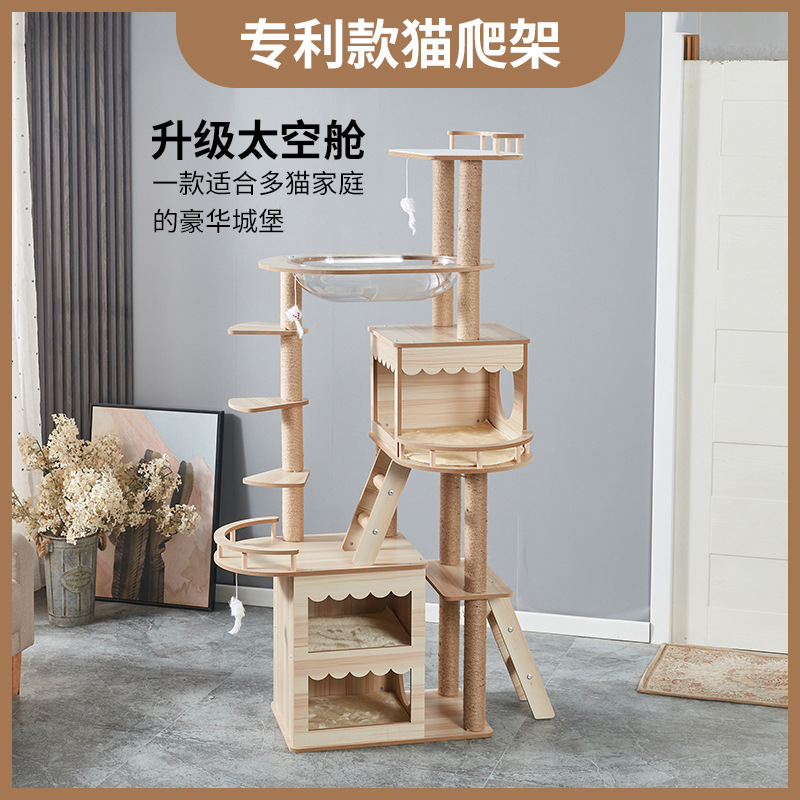 Bingkai panjat kucing melalui Tianzhu, aksesori pabrik kayu solid banyak lapisan tidak menutupi pvc langit-langit kucing memanjat bingkai bebas lubang