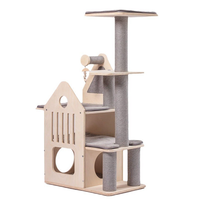 Kayu Pinus Semua Kayu Solid Besar Kucing Rak Climbing Villa Satu Kamar Ruang Angkasa Kolom Sisal Kuning Lemari Sands Kucing Bertingkat