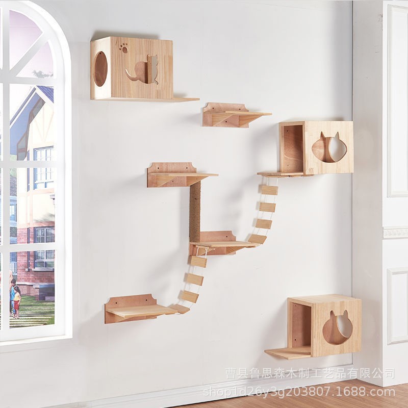 Rak panjat dinding kucing, sarang kucing platform terintegrasi dinding rumah, mainan kucing besar kayu, tangga panjat tebing