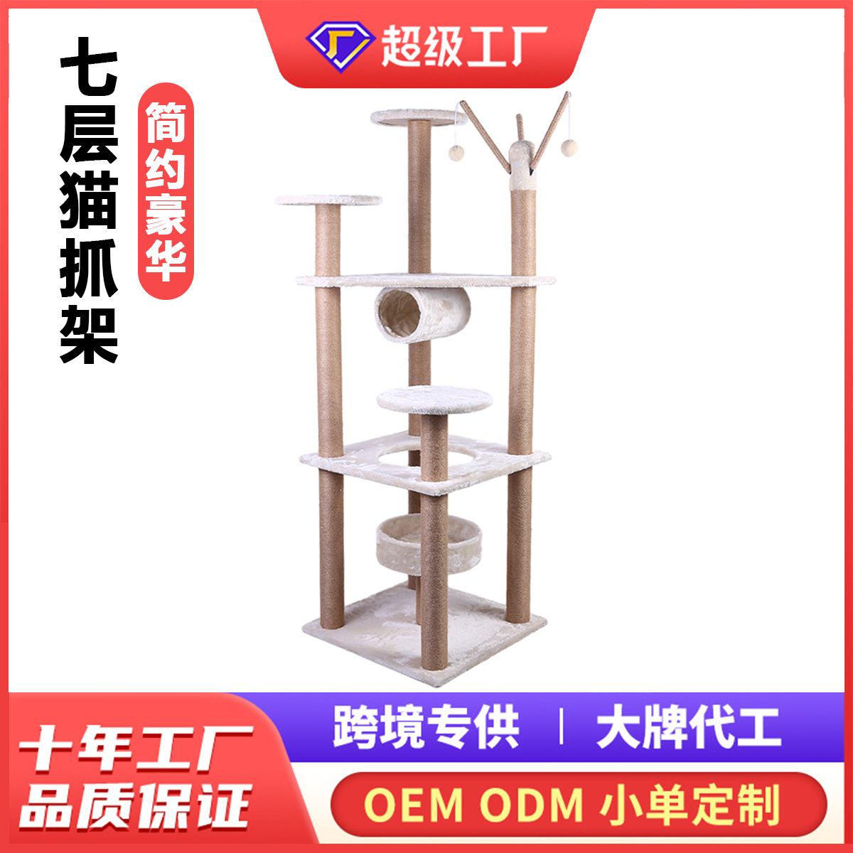 Mewah tujuh lapisan besar kualitas tinggi kucing memanjat bingkai pabrik grosir lintas batas ekspor sisal kucing baru papan gores kucing menggaruk tiang