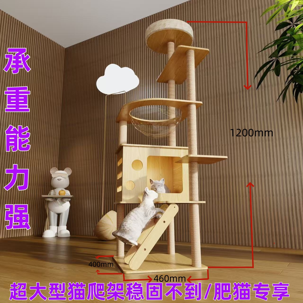 20 kg Kucing Besar Kayu Solid Kucing Mendaki dan Menggenggam Kolom Rumah Pohon Mainan Papan Genggam Empat Musim Kapsul Ruang Angkasa Rak Memanjat Kucing Kayu Solid