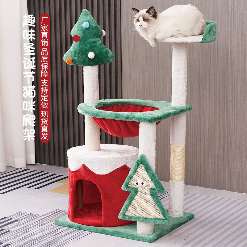 Seri Natal kucing memanjat bingkai stabil anti gores pohon kucing mainan sarang kucing pohon kucing terintegrasi kucing perlengkapan grosir