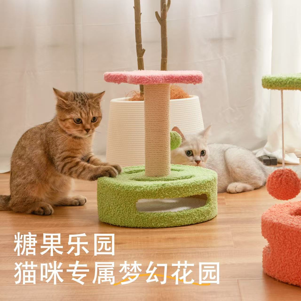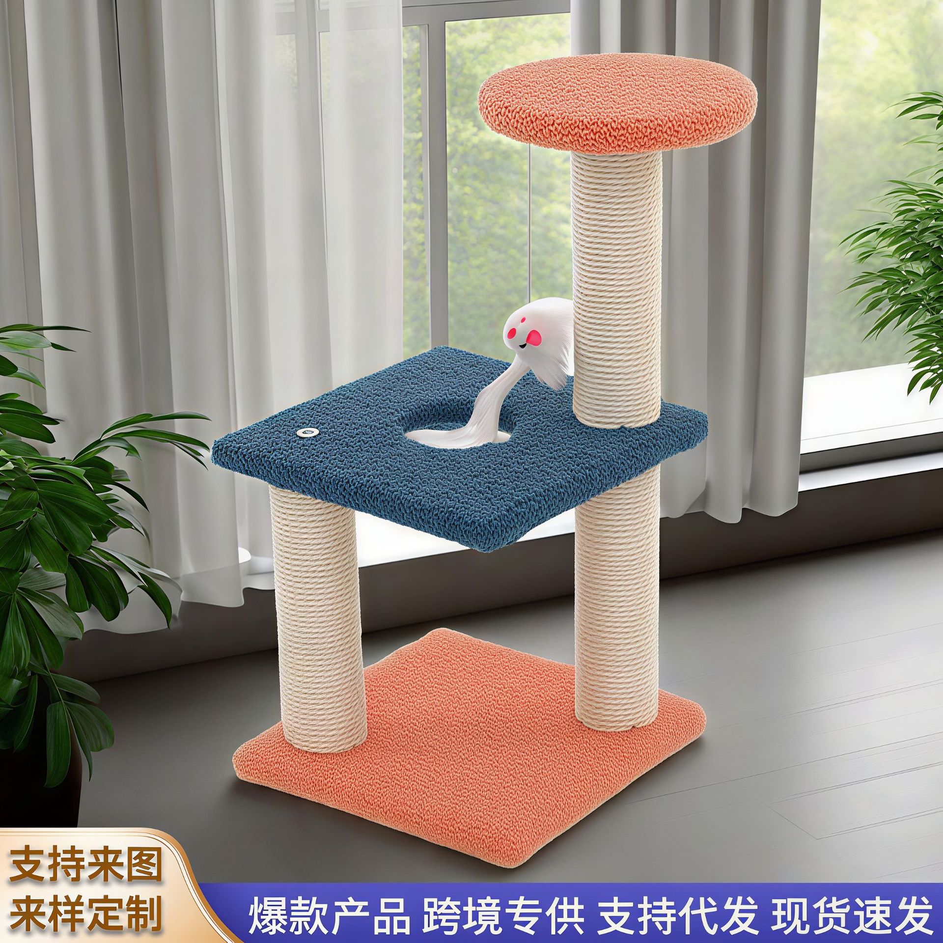 Penjualan langsung pabrik penjualan luar negeri jamur cakar sisal kolom papan goresan kucing pohon melompat terintegrasi platform sarang kucing mainan kucing memanjat bingkai