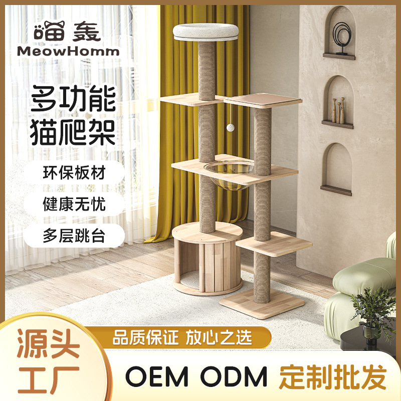 Perdagangan luar negeri rak panjat kucing kayu solid double layer khusus kucing besar rak kucing terintegrasi rak grosir lintas batas mendukung kustomisasi