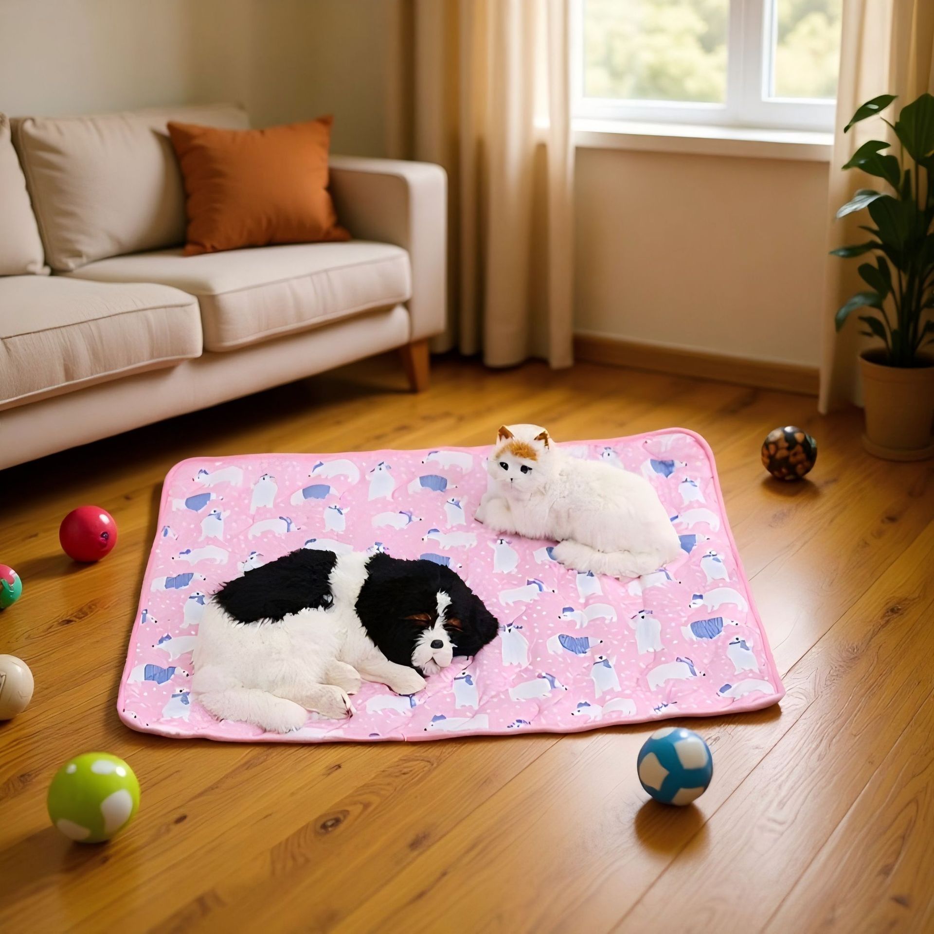 Alas pendingin hewan peliharaan musim panas, alas anjing bermotif kartun, tempat tidur kucing, tahan kotoran, anti lengket, terasa dingin seperti es.