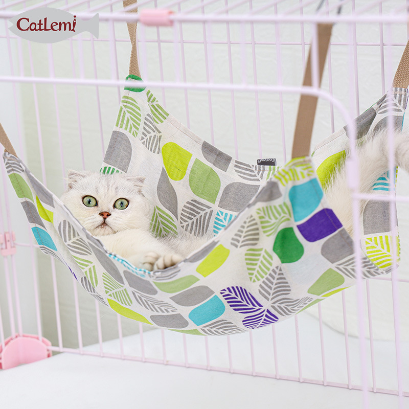 Amazon kandang tempat tidur gantung katun linen bernapas musim panas hewan peliharaan warna-warni kandang kucing ayunan sarang kucing tikar gantung sarang kucing