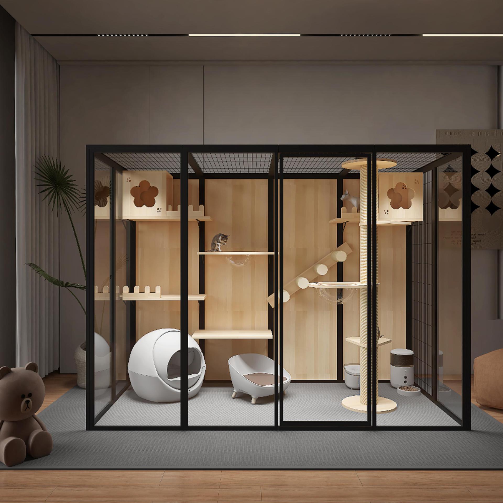 Rumah Kucing Rumah Kucing Rumah Kucing Rumah Kucing Rumah Tangga Rumah Kucing Kayu Solid Rumah Besar Dalam Ruangan Lemari Kucing Mewah Kaca Rumah Kucing
