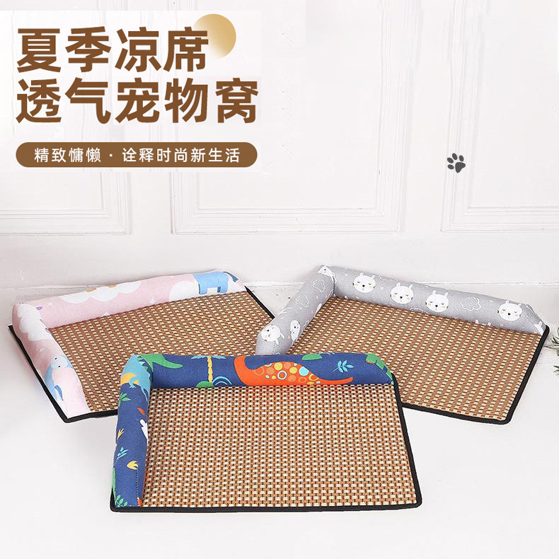 Kandang kucing empat musim Universal anyaman jerami tikar musim panas empat musim Universal setengah tertutup kandang hewan peliharaan produsen barang tersedia