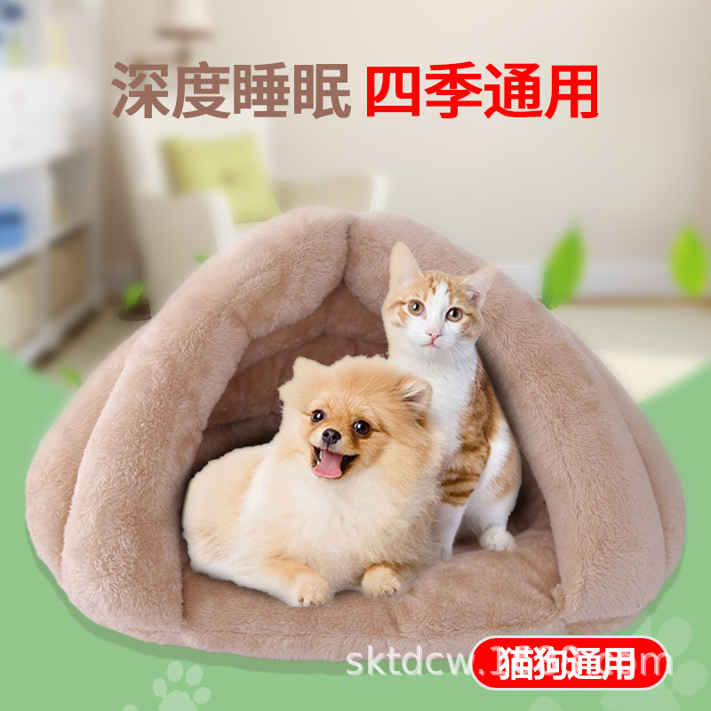 Kandang kucing dapat dilepas dan dicuci, kandang anjing semi tertutup, musim panas sejuk, musim dingin, kandang hewan peliharaan penggunaan ganda, kantong tidur kucing beludru
