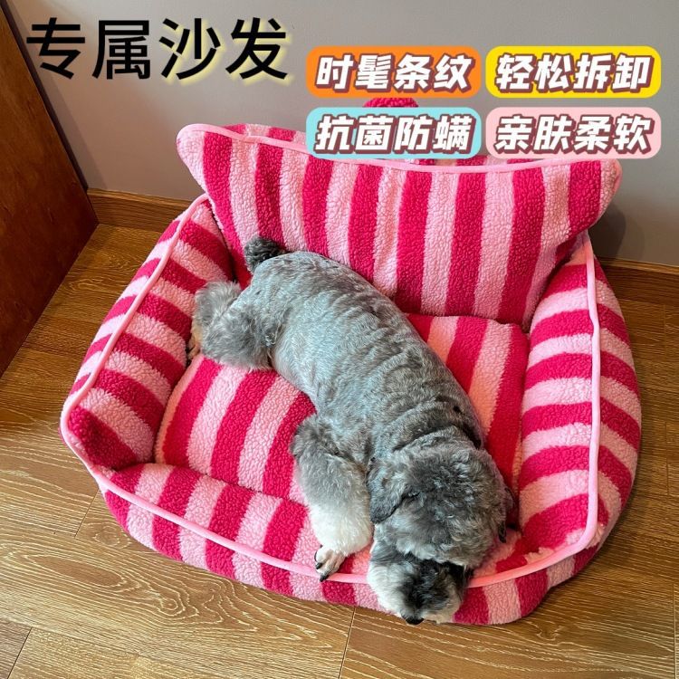 Kandang kucing bergaris, sarang sofa hewan peliharaan universal empat musim tidur kucing deodoran antibakteri hangat dapat dilepas dan dicuci