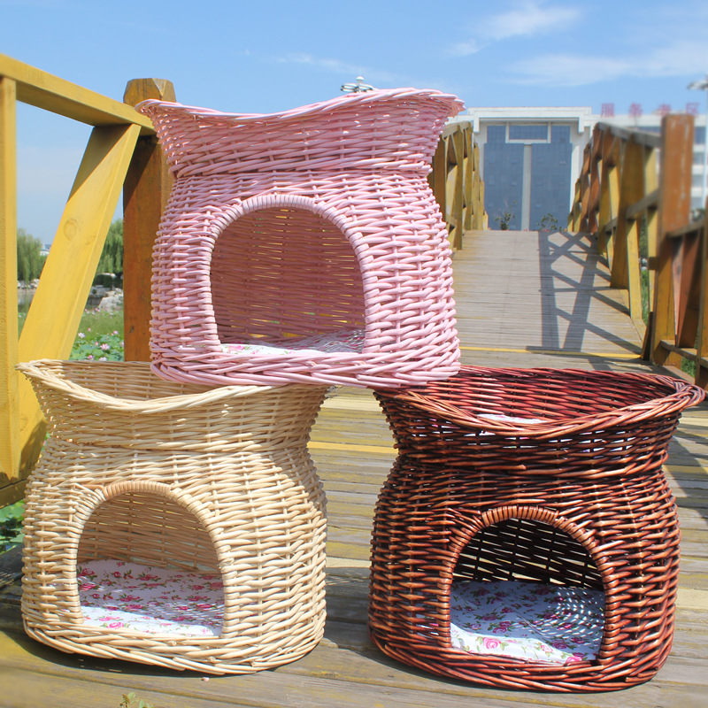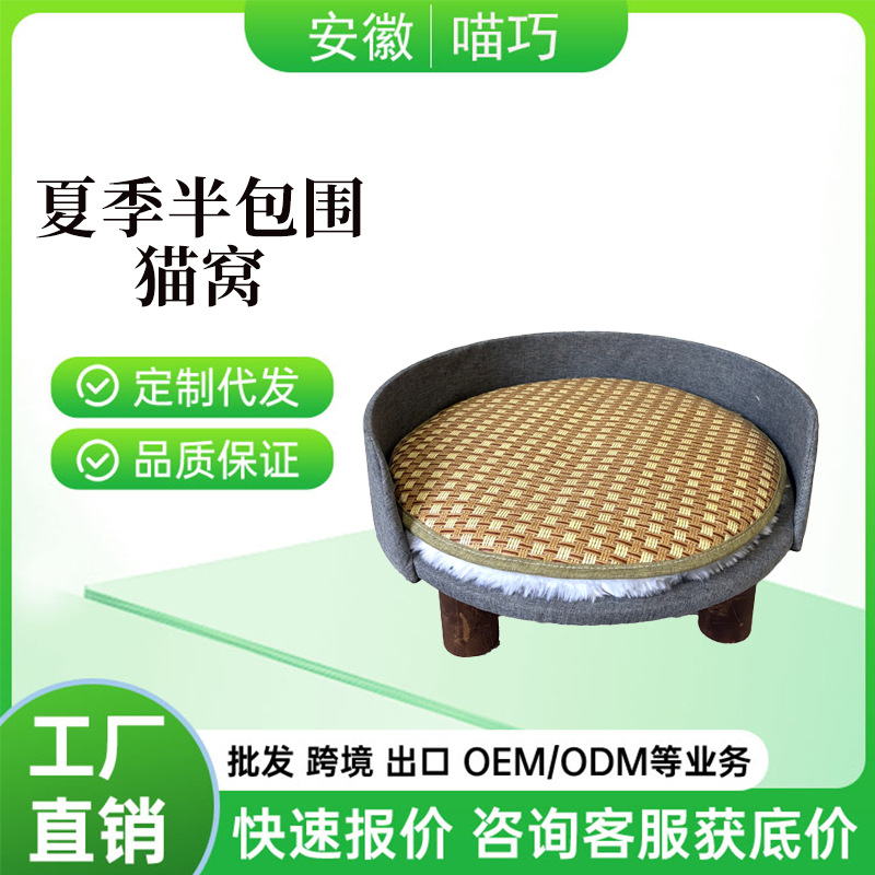 Sarang kucing anyaman rotan musim panas rumah rumah Bomei Teddy kandang kandang anjing peliharaan perlengkapan sarang hewan empat musim tikar musim panas yang dapat dilepas dan dicuci