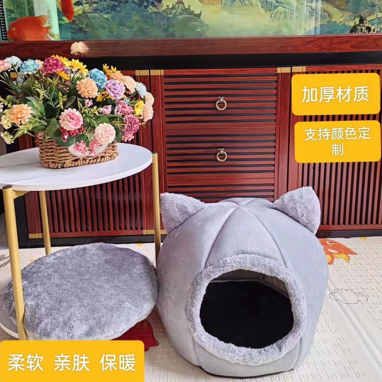 Amazon Hewan Peliharaan Kucing Empat Musim Sofa Alas Tidur Sarang Kucing Perlengkapan Musim Hangat AliExpress Pabrik Lintas Batas