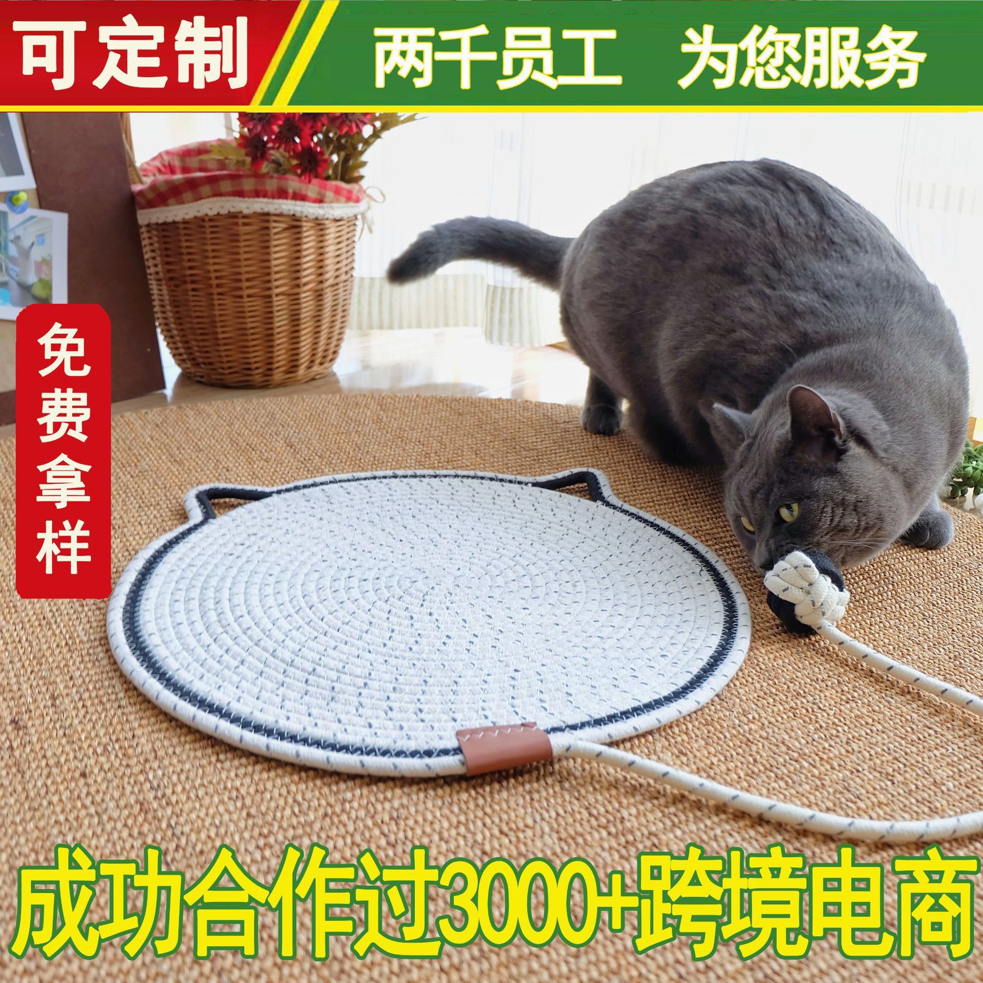 Sarang kucing rotan universal, sarang kucing musim panas empat musim, tikar tenun kucing, sarang jerami, tali katun, sarang kucing