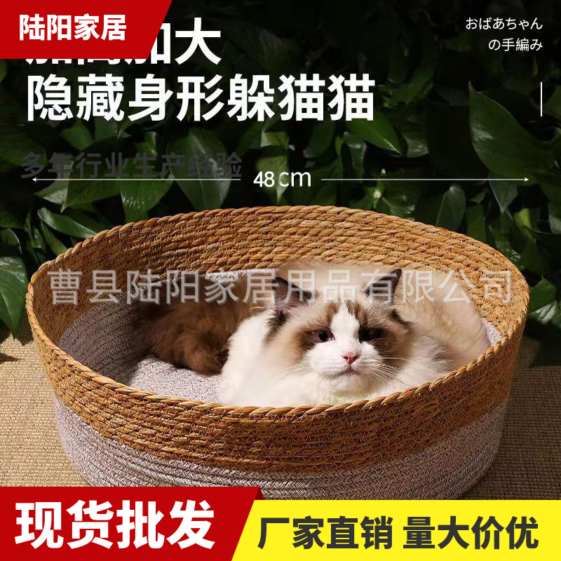 Sarang kucing rotan universal empat musim, sarang kucing musim panas, papan goresan, tenun jerami terintegrasi, perlengkapan kandang kucing