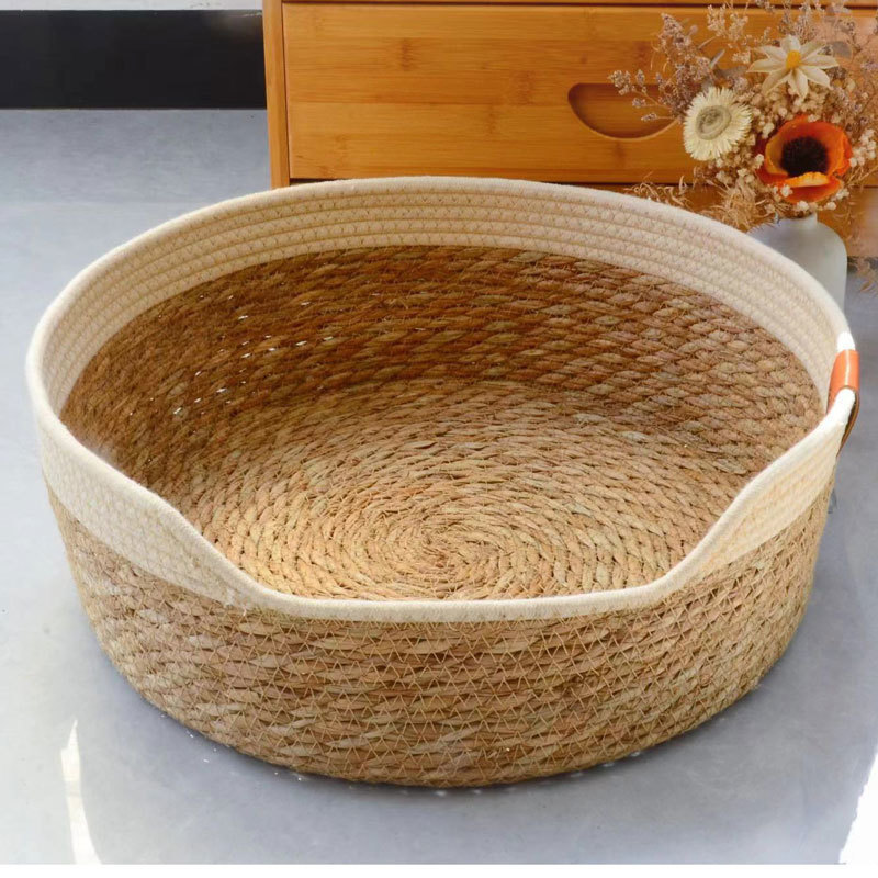 Anyaman kandang kucing sarang empat musim universal rotan rumah kucing musim panas dapat dilepas dan dicuci sedang dan kecil anjing Teddy woven sarang hewan peliharaan