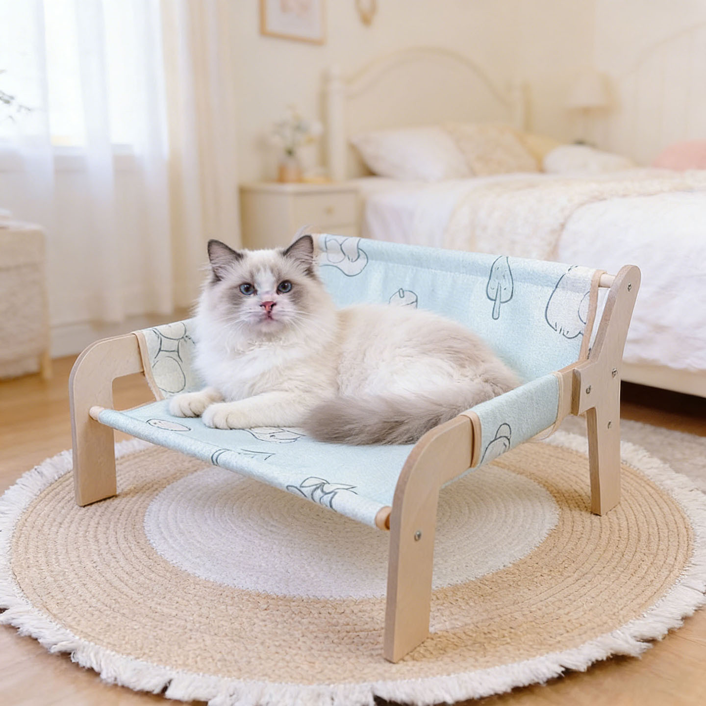 Tempat tidur gantung hewan peliharaan, sarang kucing anjing tempat tidur gantung empat musim universal lantai dapat dilepas dan dicuci