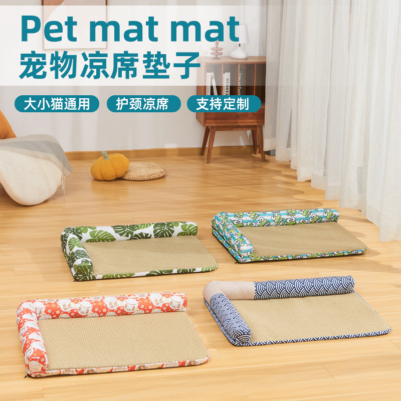 Tikar musim panas sarang kucing kecil tikar rotan tikar anak anjing Teddy rusa kasur anjing kucing pendingin tikar anjing besar