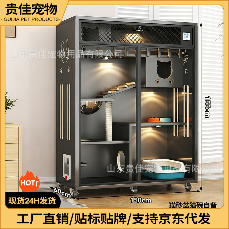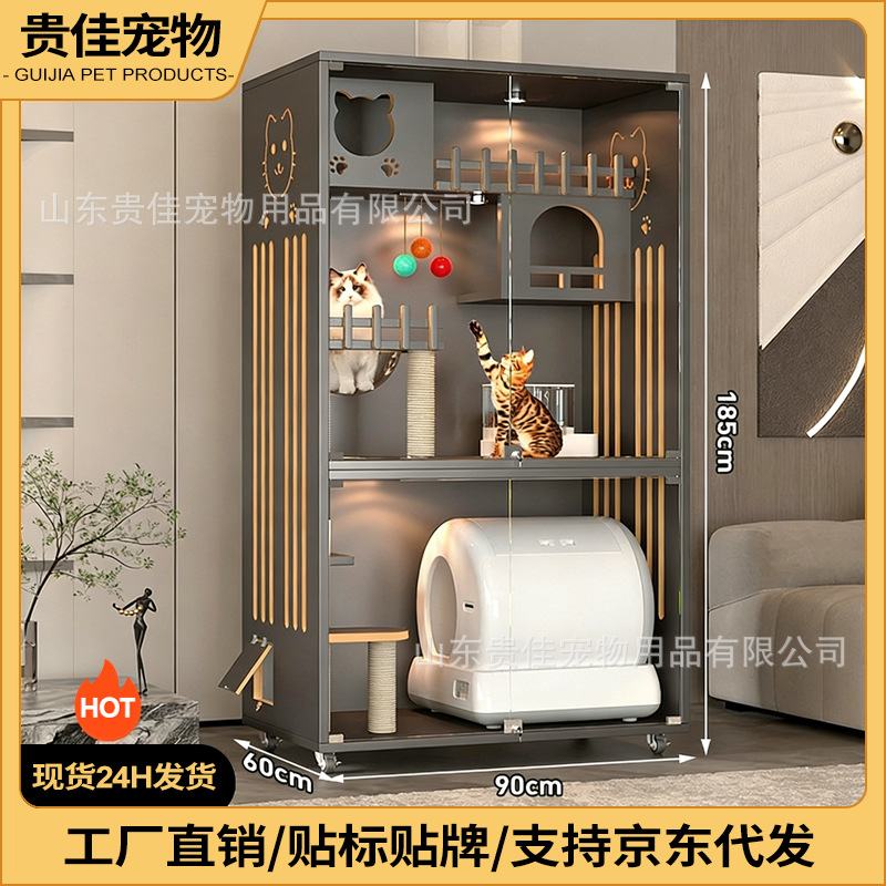 Kotak pasir kucing besar, rumah kucing kayu solid, kandang kucing dalam ruangan, rumah kucing tiga lantai, rumah hewan peliharaan.