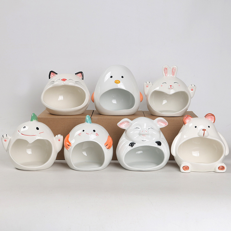 Sarang keramik Hamster, sarang tidur sarang tidur rumah pendingin sarang hewan peliharaan beruang emas mulut besar kartun hewan keramik